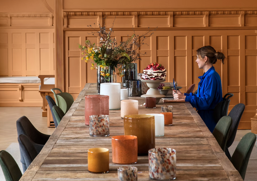 "Kussens om heerlijk in weg te zakken en glas in mooie stijlvolle donkere kleuren. Combineren is een makkie in deze stijl!"