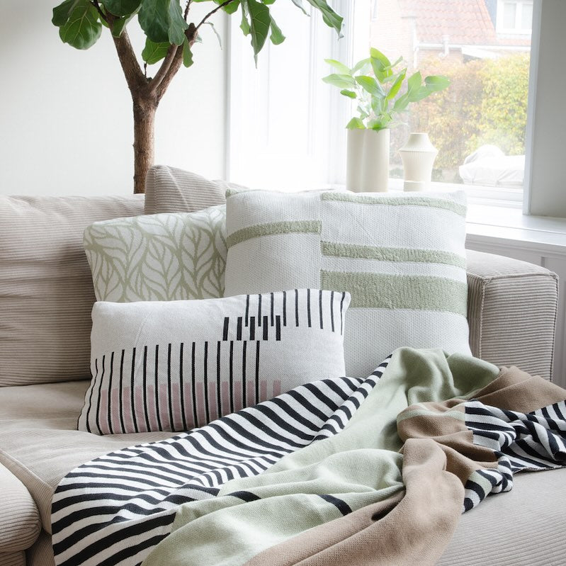 Bij Serenity Fusion draait alles om het juist combineren van materialen, patronen en kleuren. Alle kleuren binnen deze stijl zijn licht en afgeleid van de aardse elementen. Zo is het glas binnen deze stijl als de kleur van Hollandse luchten, weiden en bossen; heeft een tafeltje een houten of marmeren blad en is raam- en stoelbekleding van luchtig linnen. En dit alles omringd met mooi zwart of wit biesje. Mix & match is hierbij het codewoord.