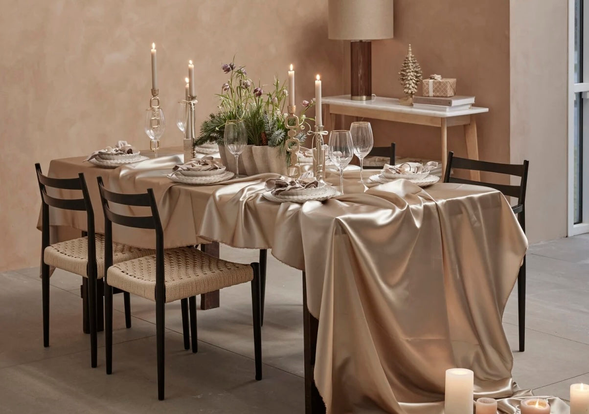Met glimmende materialen betover je de ruimte in een handomdraai. Net als in de mode voeg je glanzende zijden stoffen toe en decoreer je met glimmende glasornamenten, gouden en zilveren klassiekers. Jouw paleis waarin je Kerst viert als nooit tevoren: any home can be a castle...